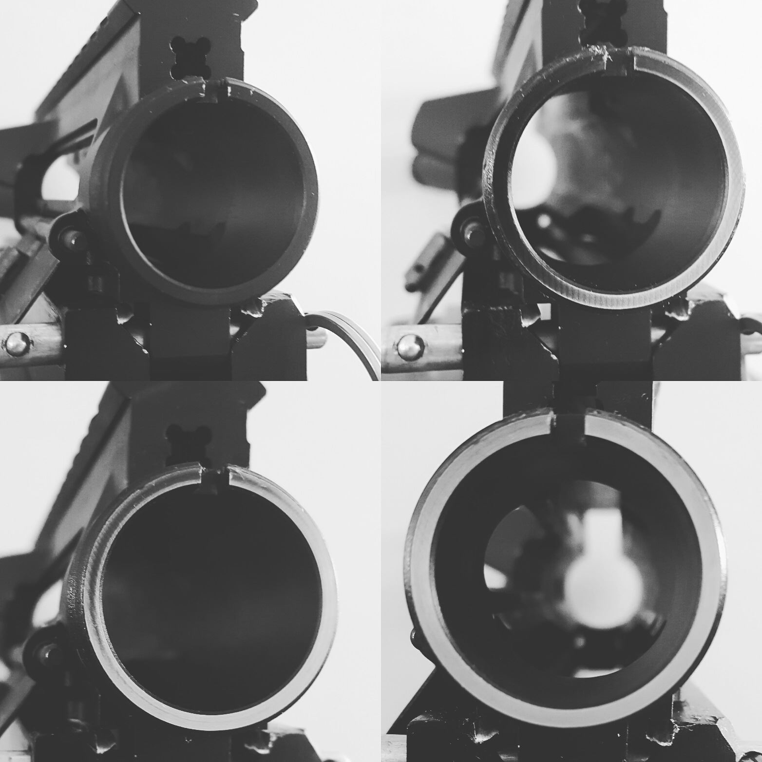 It is strongly advised to utilize the B.A.R.T. Tool in a horizontal fashion.  Using it vertically in combination with lapping compound can allow the compound to run inside the upper receiver's bolt-carrier channel and cause the unintentional removal of anodizing in that location.