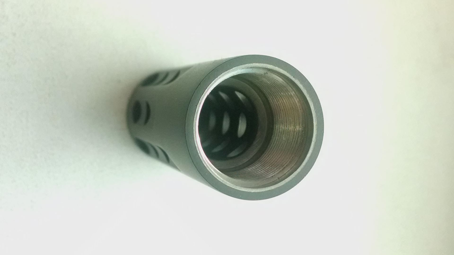 Pepper Pot Muzzle Brake, Straight Flute, 11/16X24 Threads, .850 OD, Cerakote Black, 45 Caliber